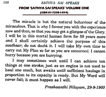 NOTE PARTICULARLY SAI BABA'S ASSERTION:"My Word will never fail..."