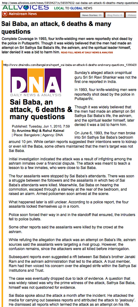 - THE PIONEER (Indian newspaper) on the Sai Baba bedroom murders