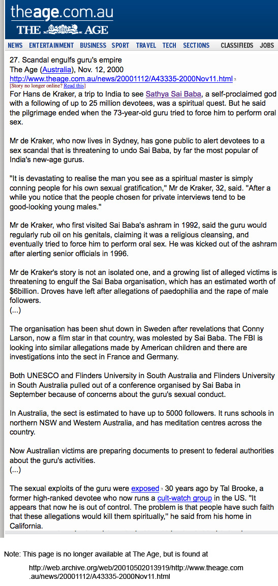 - VANCOUVER SUN on sex abuse by Sai Baba