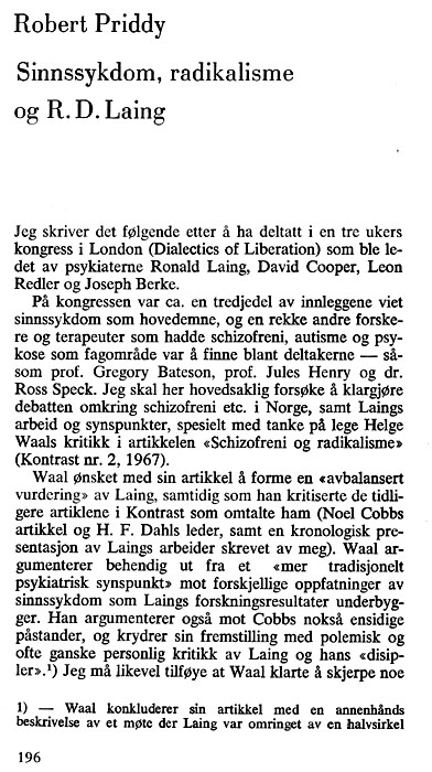 Three articles in the journal 'Kontrast' by R. Priddy on R.D. Laing