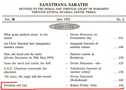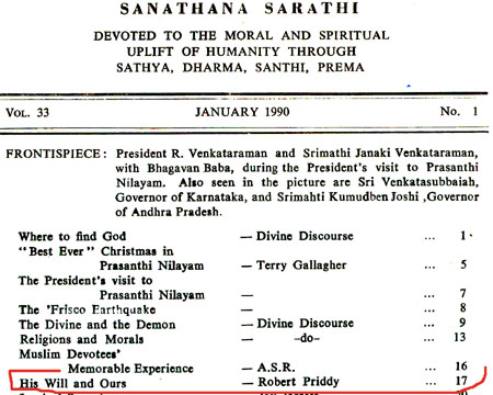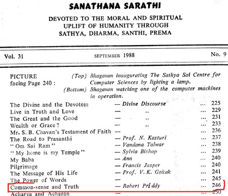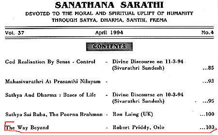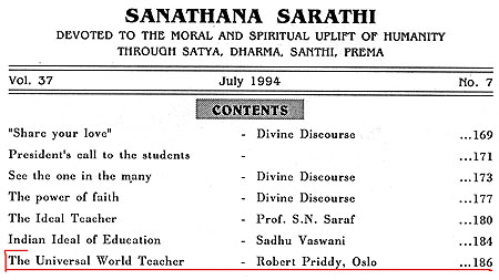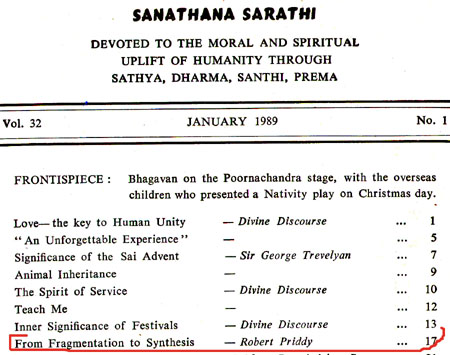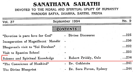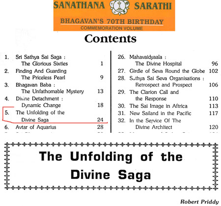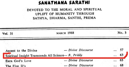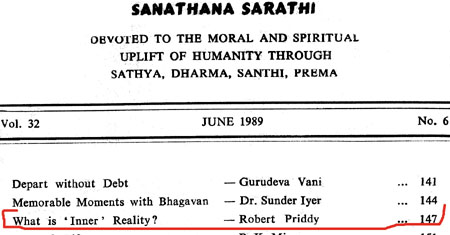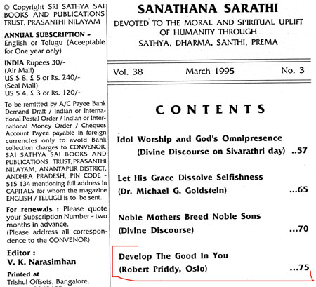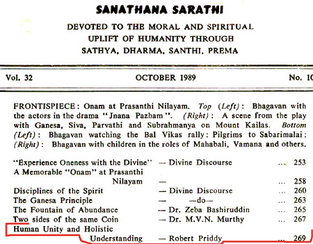 Robert Priddy's former promotion and elucidations of - and commentaries on - Sathya Sai Baba's teaching