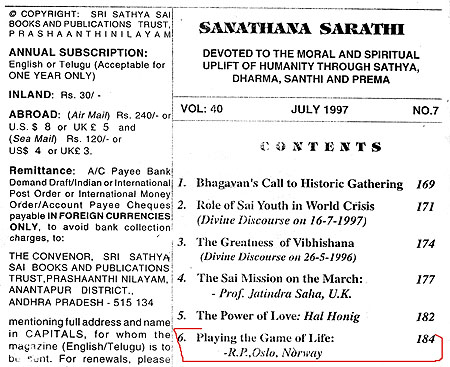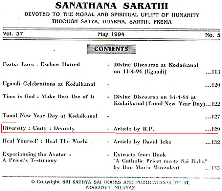 NOTE: These articles were published while I was a follower of Sathya Sai Baba. There I attempted to make sense of many of his vague statements and unclear teachings and to bring them more into line with common sense, science and spiritual culture. Since events and inside revelations from V.K. Narasimhan and others forced me to review my adherence to Sathya Sai Baba, much if not all of of what I wrote concerning him I now see as unfounded.