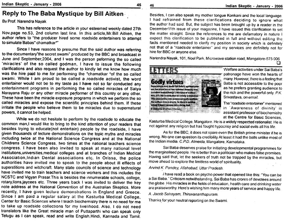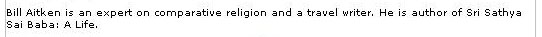 Further articles examining William 'Bill' McKay Aitken and his article in The Week and his book on Sai Baba's life are found by clicking as follows:-