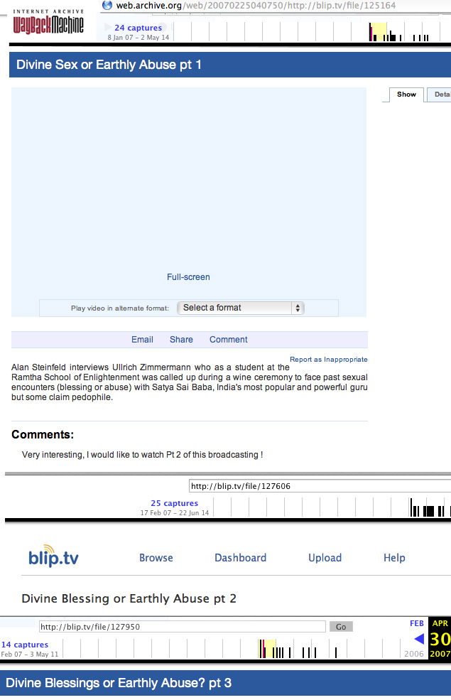 Both his common sense and his more esoteric musings may well be helpful. He raises the question whether this oral sex was sexual abuse or a 'divine blessing', and - when this interview was made all of seven years ago, he did not then regard it as sexual abuse. However, the factual description he gave was of oral sex imposed on him virtually against his will and in his very first meeting with Sai Baba who he believed and trusted in fully as being God. Those of similar faith - such as his mother also was - tend to accept the idea that it was a divine blessing (unless - as most do - they deny it can ever take place). Many other young men from across the world have already independently testified to the same kind of sexual abuses by Sathya Sai Baba through many years (see under 'Witnesses' on ExBaba.com). None of them stated they regard the sexual acts as a 'divine blessing'. Whatever 'spiritual' interpretations some devotees may choose to apply here, ExBaba's campaign to show that Sai Baba does indeed have sexual relations with young men is yet again vindicated. In the interests of truth and the protection of the innocent, former devotees and others around the world have worked - against cover-up and many obstacles - to expose the truth about Sai Baba's most widely alleged molestations of young males. Ullrich's natural honesty is unmistakable as he tells of his whole Sai Baba experience - including the difficult and sensitive subject of oral sex. He, like others who have come forward, cannot be praised sufficiently for his bravery and adherence to truth and decency. As his interviewer says, these revelations will come as a major shock to those Sai devotees who watch the video, not least because of the openness and entirely unassuming character of Ullrich in his self-evaluations and his fearless answers to questions put to him. Ullrich Zimmermann points out that there is a big difference between a 'guru' and a 'teacher' - where gurus unempower their followers and rob them of freedom, teachers (as to spirituality) always leave those who seek their advice to make up their own minds and achieve their own way in life. Ullrich followed Sai Baba as a guru, but is now very clear that he no longer wants Sai Baba or any other guru, even though there may have been some temporary benefits from such devotion. Note that the International Chairman