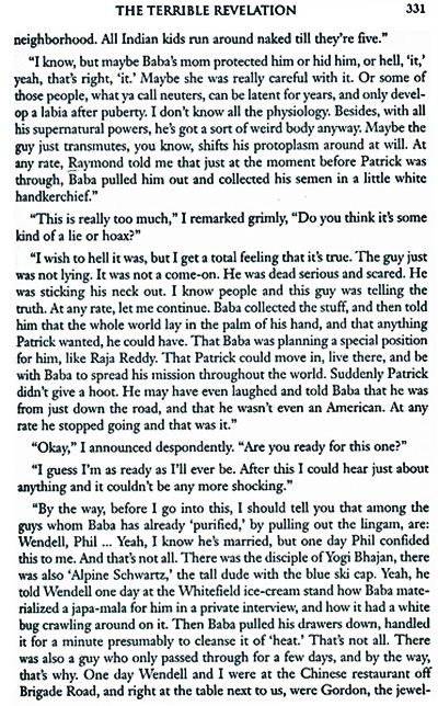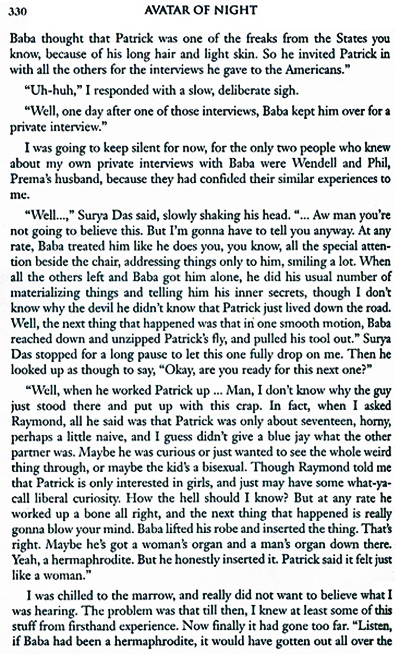 The following scanned excerpts from his writings covers the main revelations about Sai Baba's nature and sexuality:-