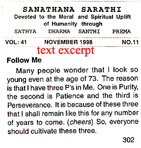 Death in ignominy despite enormous medical resources used Sathya Sai Baba was a broken man by the time they took him away to his own super-specialty hospital while he cried out to devotees to help him! Of course he was unable to cure himself, as most devotees fully expected! This time it was all too real an illness, not a play-act from which he could appear to cure himself! At his previous birthday (the 85th by Indian reckoning when he was 84 years old) he was like a wooden idol, expressionless and mostly completely silent and rigid. He broke down in tears when a speaker called him 'Sri, Sri, Sri Sathya Sai'! (see video clip download 3.9 mbs http://www.exbaba.com/videos/crying_baba_231110.wmv or to download quicktime movie shortened clip 9Mbs click here) He proved that he could not live up to his own ideal. He died without the having had the ability to speak at all for weeks, let alone laugh... so believers in him should judge him by his end according to his own words in the quotation scanned here:-