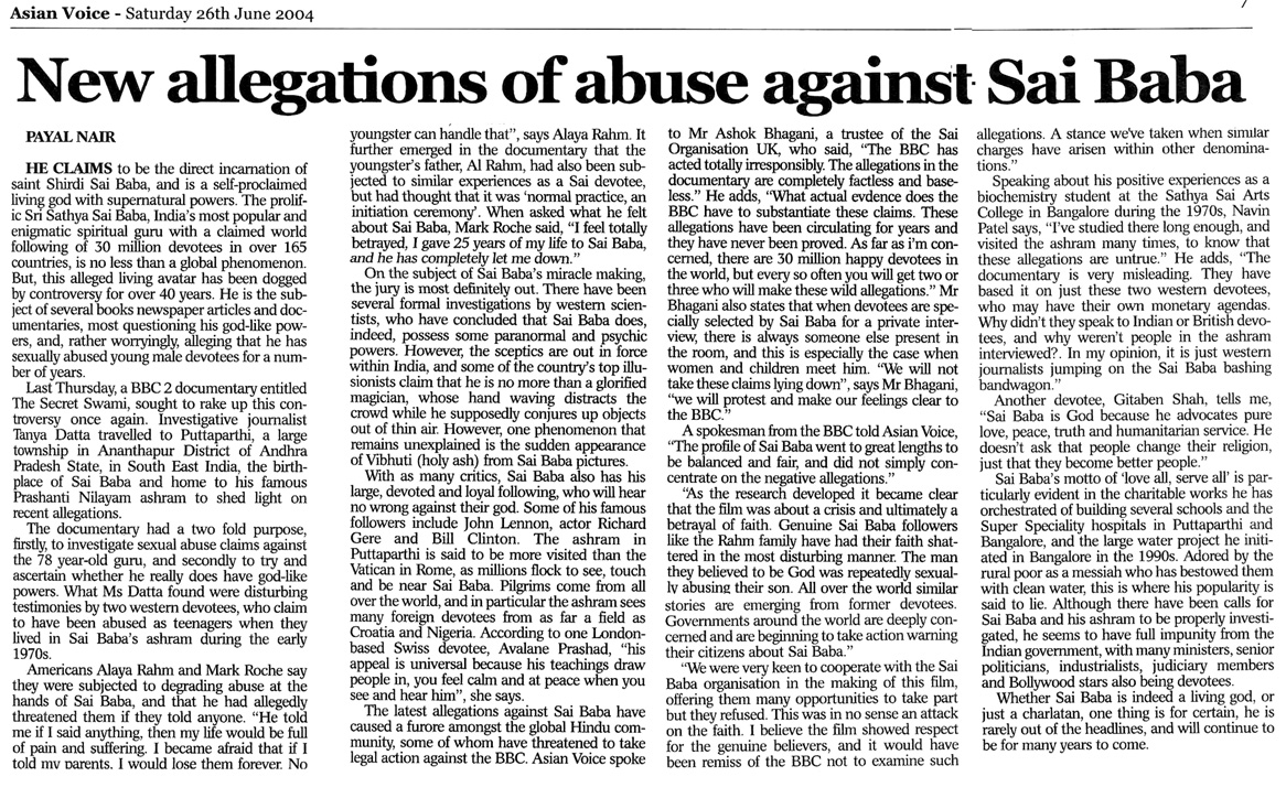 Asian Voice - Sai Baba Controversy