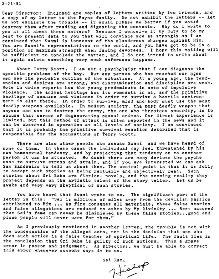 by Hislop and the top Sai Org. leaders (to whom Hislop sent a copy).
