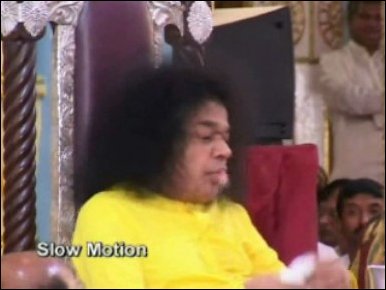 Sai Baba allowed an unprecedented live broadcast in the Indian subcontinent of his so-called 'lingodbhava' (bringing the egg-like ellipsoidal object out of his mouth after what looks like a painful process of 'regurgitation'). However, one can most clearly see that NO lingam 'actually emerged at all this year. Instead there was a small spurt of yellowish vomit, which was later claimed to be the lingam in liquid golden form!