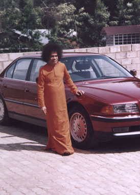 (Below: Sai Baba and the BMW)