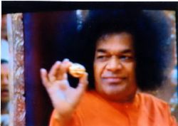 On the night of Shivarathri, while the devotees are engaged in singing bhajans, Satya Sai Baba goes into labour. He squirms with pain, his right hand pressing on stomach, heart and neck. While wiping the tears, sweat and saliva with a towel, he suddenly gives birth to an oval gold or stone linga from his mouth.