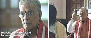 So who is this Dr. Joshi? Murali Manohar Joshi is in the right-wing Hindu Nationalist Party (BJP). Among his backward-looking achievements when empowered as Indian Minister of Education and Human Resources was the funding of Hindu astrology with the people's precious government money. He had to resign from the Union cabinet when he was charged in the case over the destruction of the Ayodhya mosque (the Babri Masjid demolition case), after which none of the senior BJP leaders called on him ('This Week', Nov. 16, 2003). Yet, cynically, Sathya Sai Baba still welcomes this destroyer of the mosque, an angry man lacking self control!