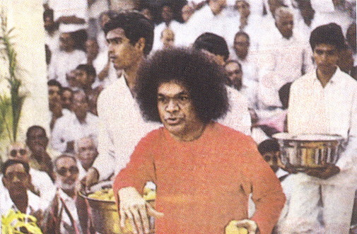 Pic. 2 is the photograph of the Baba distributing letters to his devotees, after a sumptuous lunch to the devotees and the residents of Puttaparthi. It was after the 6 murders in the bedroom. It looks strange of a person who talks about practicing universal love and his face expressing anger and cruelty. We remember Nero. When actual murders were carried out and Sai Baba got the case closed, this alone proves he is not one practicing Sathya Dharma, Shanthi and Prema.