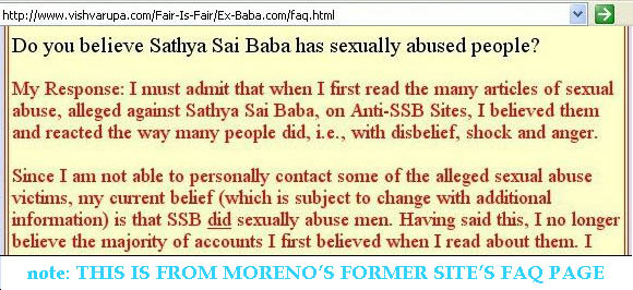 If he agrees or not, he was: sexually abused, and he knows what abuse is, because he admits that Sathya Sai Baba is in fact sexually abuse men, here in Moreno's own words;