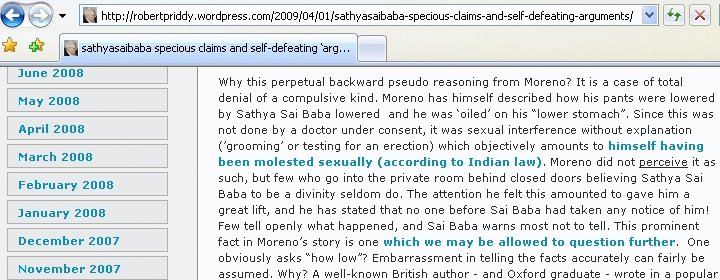 Now that Moreno is dead, and looking back upon his life, we can imagine, that he might find out, how useless his struggle against victims of Sai Baba was, because his hateful internet campaign didn't have any effect on us whatsoever, we just continued putting the truth about Sathya Sai Baba on the internet.